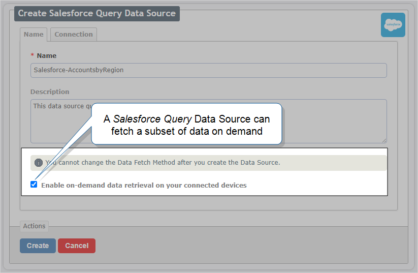 6. A Salesforce Query Data Source supports the on-demand option, which enables dynamic data retrieval based on information provided in a form.
