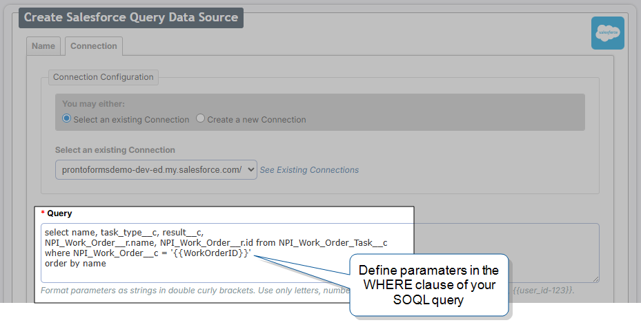 Set up parameters in an On-Demand Salesforce Query Data Source